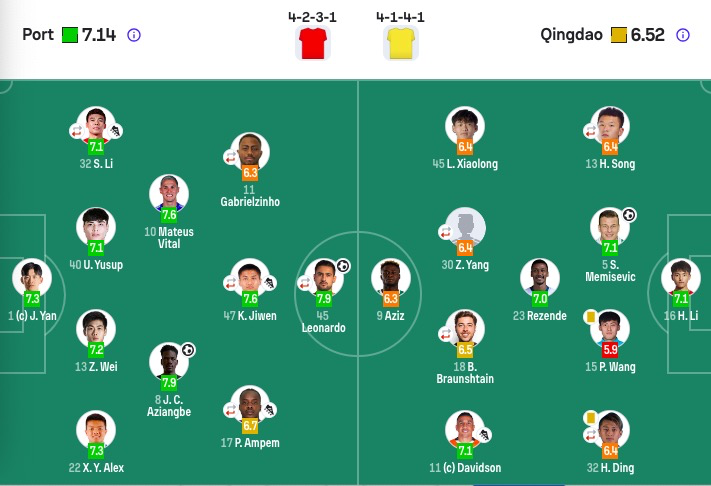 前锋:11-加布里埃尔(70'33-刘祝润)、45-莱昂纳多(70'7-武磊)、17-安佩姆(78'49-李新翔)